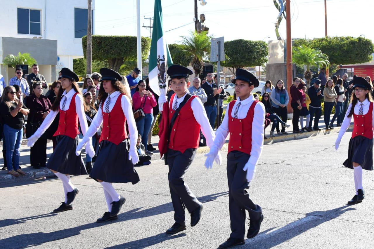 26 escoltas y bandas de guerra desfilaron con motivo del làbaro patrio. Guamúchil.- Con un desfile de escoltas de diferentes…