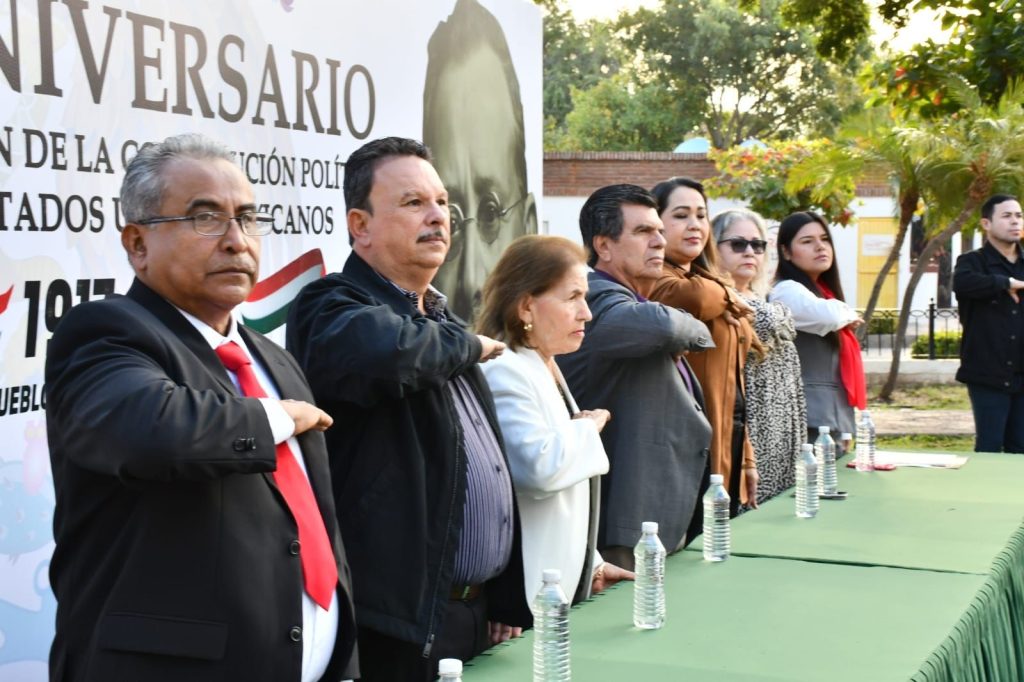 MOCORITO.- Luego de izar bandera nacional en la Plazuela Los Tres Grandes, el alcalde Enrique Parra Melecio encabezó el 109 aniversario de la promulgación de la Constitución Política de los Estados Unidos Mexicanos reafirmando la importancia de los valores democráticos, el respeto a la ley y la vigencia de nuestra Carta Magna como pilar de la vida pública del país.
