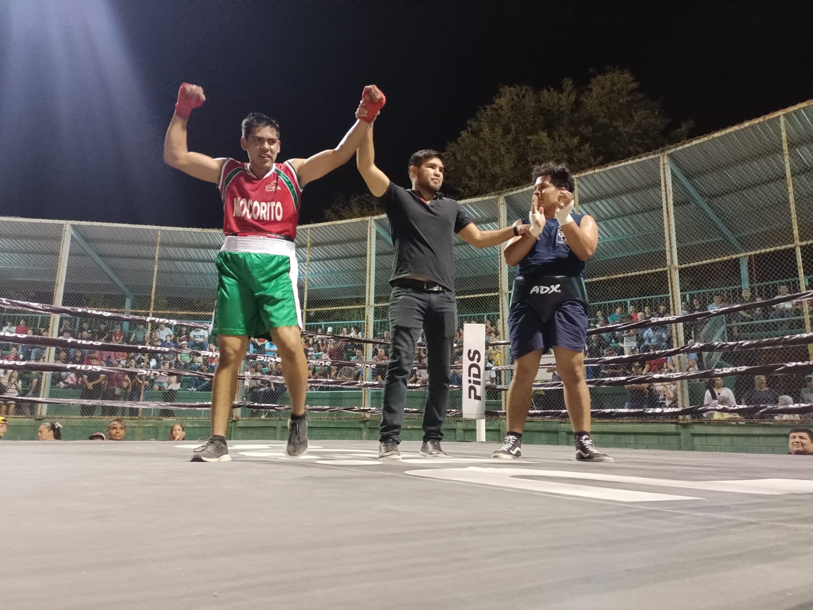 MOCORITO.- Todo un éxito resultó la Gran Velada de Box que organizó el Instituto Municipal del Deporte y Cultura Física del H. Ayuntamiento de Mocorito que preside María Elizalde, al traer una pelea profesional como estelar y ocho enfrentamientos de exhibición de carácter amateur en el estadio municipal General Pablo Macías Valenzuela de la cabecera municipal.